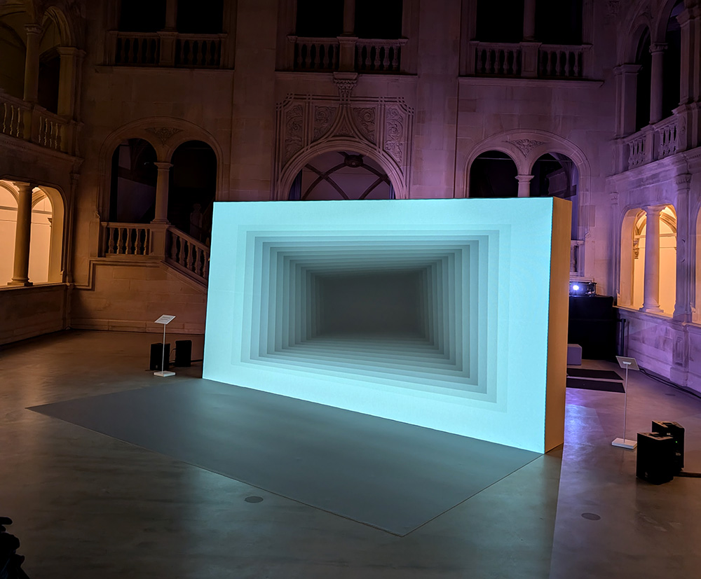 Stratmann hat unter dem Künstlernamen AQUIET dazu über 30 Bühnendesigns für audiovisuelle Konzerte und Musikfestivals entworfen und diese Live bespielt.