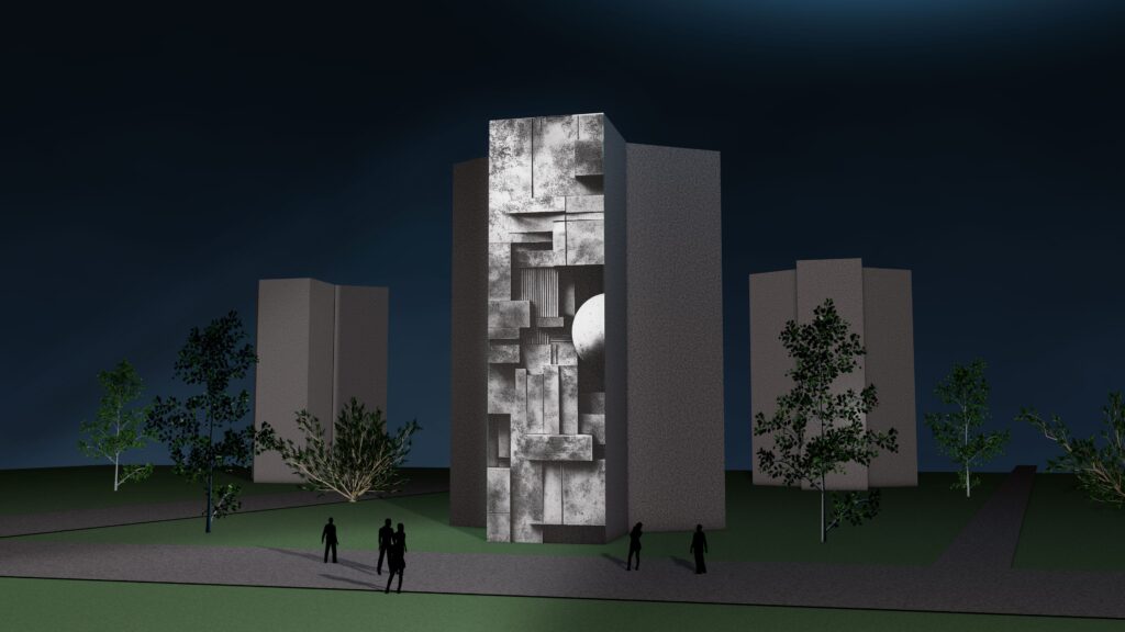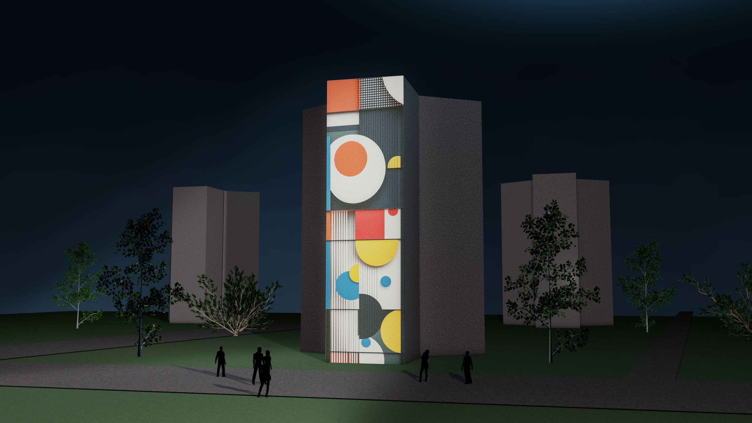 Die Videokünstler Sven Stratmann und Thomas Tegethoff entwickeln eine audiovisuelle Projektionsshow, welche sie passgenau mittels Videomapping-Technologie auf eine der Fassaden der Y-Häuser projizieren. Hierbei dient die Formsprache des BAUHAUSES als Inspiration für dynamische Animationen.